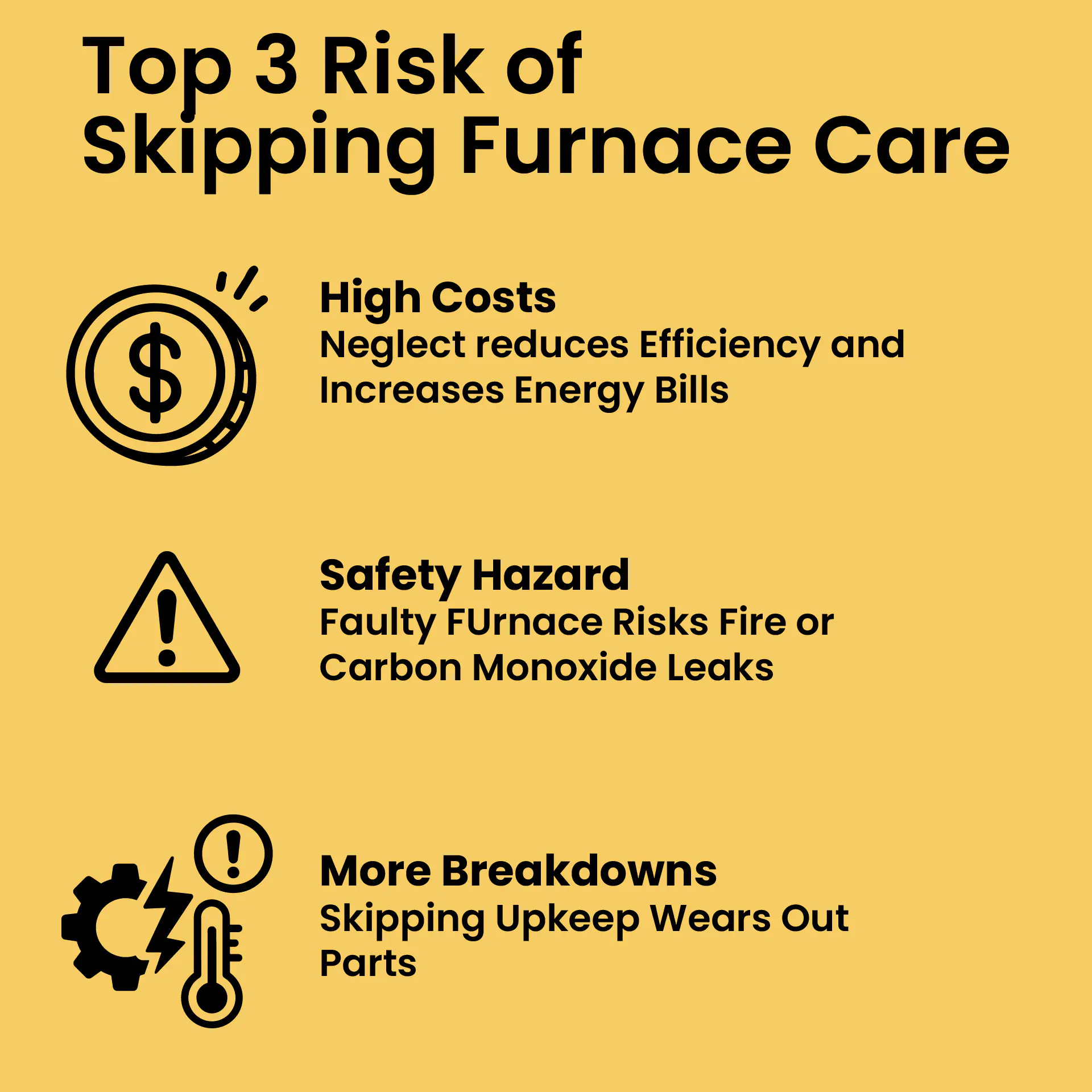 Over time, dust, wear, and mechanical strain can reduce your furnace’s efficiency. Without proper care, this can lead to breakdowns, higher utility bills, or even safety risks like carbon monoxide leaks. A seasonal tune-up keeps your system running smoothly, improves energy efficiency, and extends the lifespan of your investment.